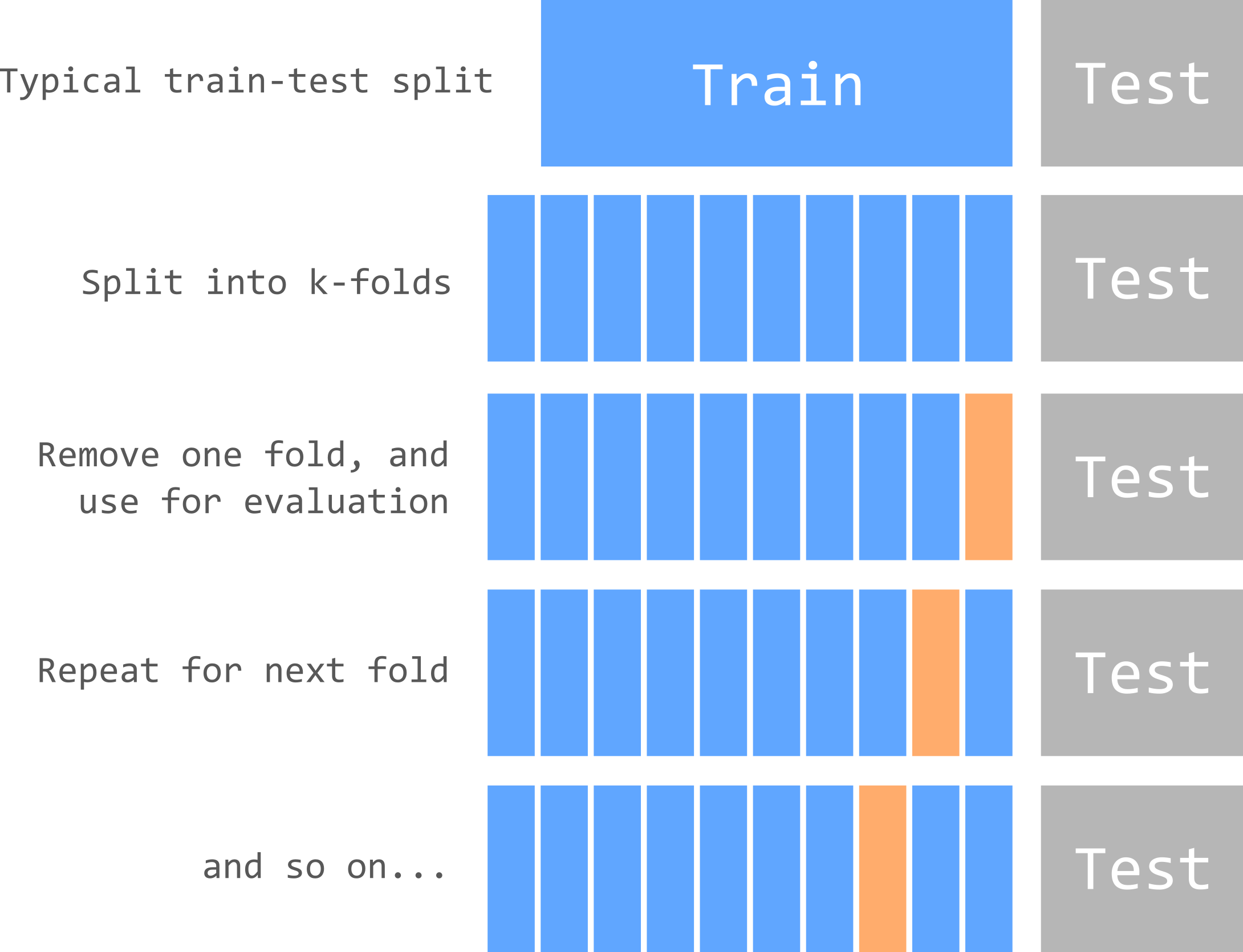 There are lots of models here, with differing values for λ, so how do we pick one? This is where cross-validation comes in, splitting the data into k-folds, and repeating the process until we find the best value for λ.