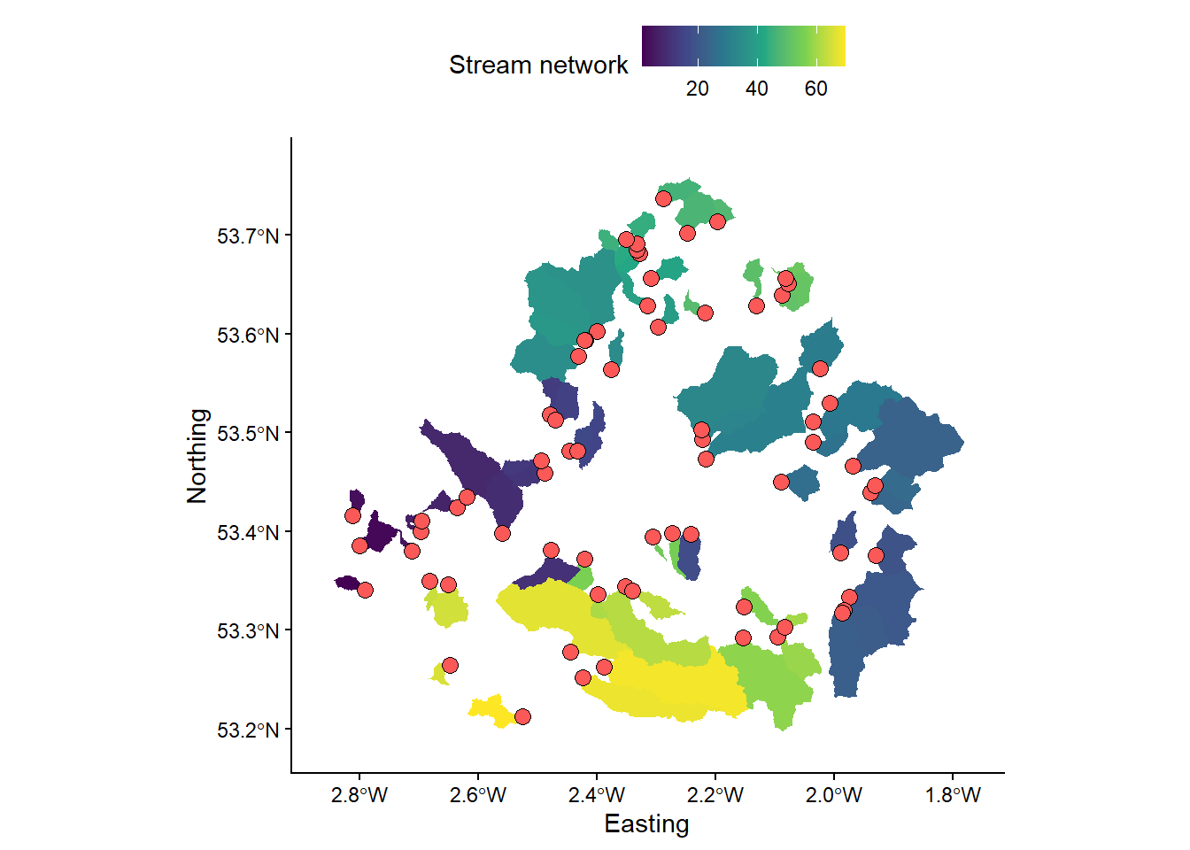 labs(fill = "Stream network", x = "Easting", y = "Northing") +